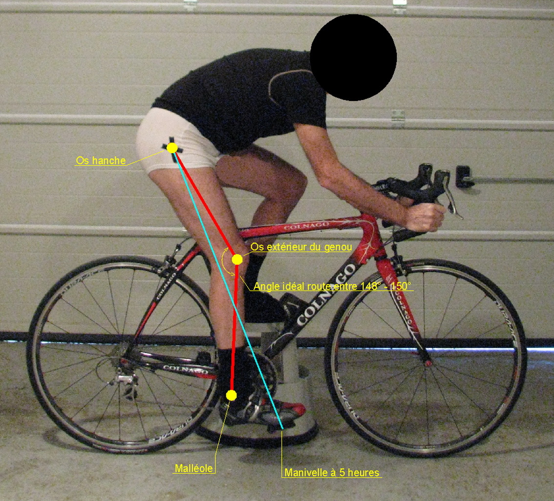 La hauteur de selle, pierre angulaire du confort : La règle d’or est d’avoir la jambe tendue avec le talon sur la pédale en position basse. Cela permet d’obtenir une flexion du genou entre 25 et 35 degrés lors du pédalage, réduisant ainsi de 45% les risques de tendinite ;